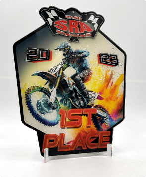 Acrylic plate awards offer several advantages over traditional glass or crystal awards, making them a preferred choice for many organizations. First, acrylic is significantly lighter and more impact-resistant, reducing the risk of breakage during handling or transportation. This durability ensures the awards maintain their pristine appearance over time. Additionally, acrylic provides greater design flexibility, allowing for intricate shapes, vibrant colors, and 3D effects that are difficult to achieve with glass or crystal. Acrylic awards are also more cost-effective, offering premium aesthetics at a fraction of the price. At MX Trophies Racing Sports Awards Trophies, we recommend acrylic awards for their modern appeal, versatility, and practicality, making them ideal for recognizing achievements in action sports and other dynamic industries.