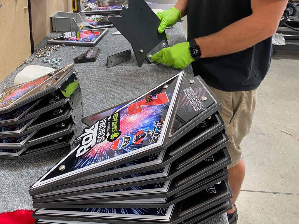 24″ x 18″ x1/4″ thick Coroplast (corrugated plastic) sign printed on the front side with the flutes running the vertical direction.